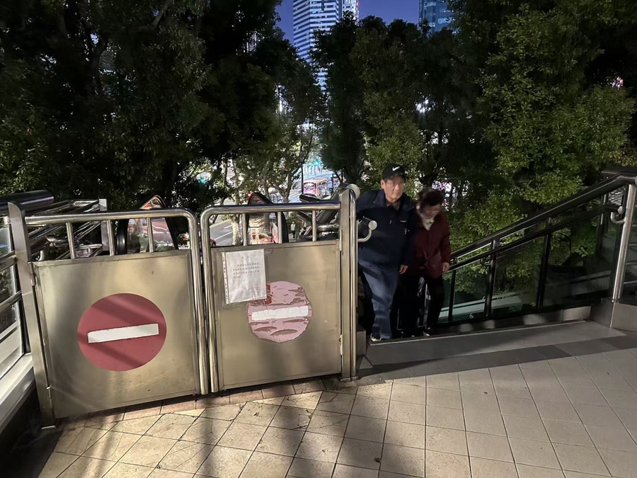 陈老伯告诉新民晚报记者,他住在淮海中路与重庆南路道路路口西北侧。每次去女儿家接孙辈放学,这里是“必经之路”。“电梯停运至少3年多了。每次,我都像‘翻山越岭’一样辛苦!”陈老伯无奈地表示,他只能选择抬腿爬梯,上到桥面时,早已是累得气喘吁吁。