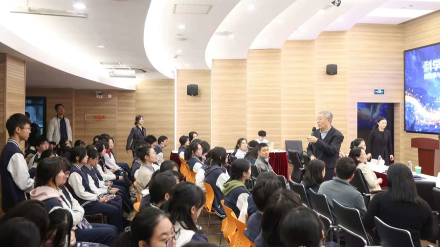 “沈院士,对热爱物理的我们来说,现在该培养哪些能力?”“中国物理发展与国外相比,还需要在哪方面努力?”昨天,在上海院士风采馆见到我国著名物理学家、中国科学院院士沈学础,同济中学的同学们十分激动,聆听沈院士分享自己的治学和研究经历后,踊跃提问,迫切期待从沈院士的回答中找到破解科学密码的金钥匙。而这,正是上海院士风采馆与同济中学联合举办此次“科学家精神的传承与启迪”主题活动的初心。